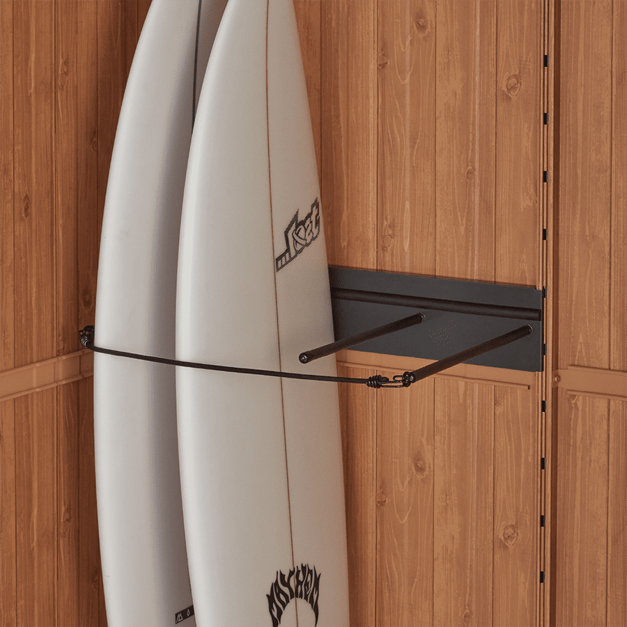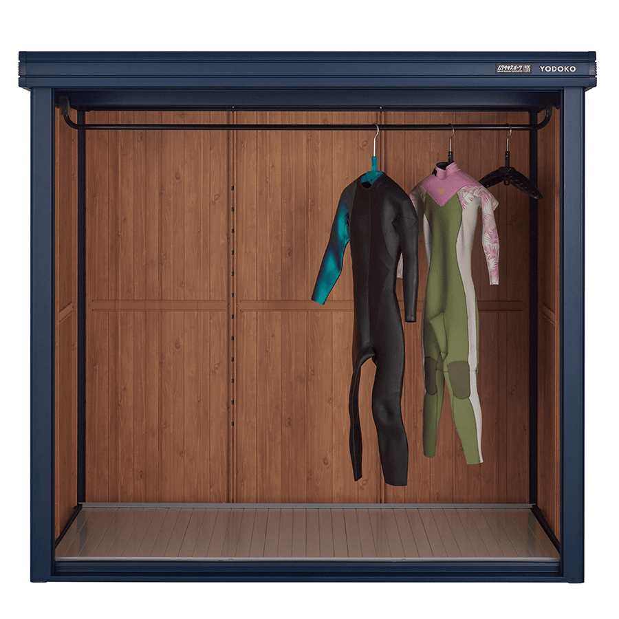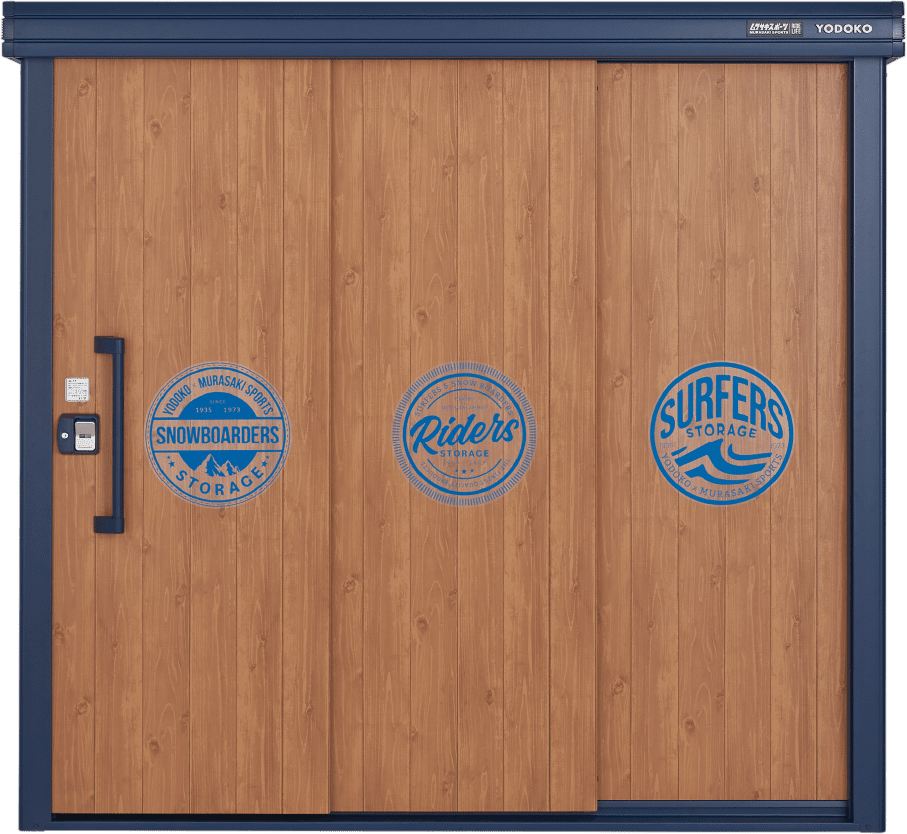 ムラサキスポーツと共同開発した「ヨド物置エルモ KOTO OKI byムラサキスポーツ」は「使わなくなったものやいつか使うものを保管する」という今までの物置の概念とは異なったサーフィンやスノーボードなどの「自然と遊ぶための遊び道具を収納し、いつでも気軽に取り出せるデイリーユースの場所」を目指しているそうです。