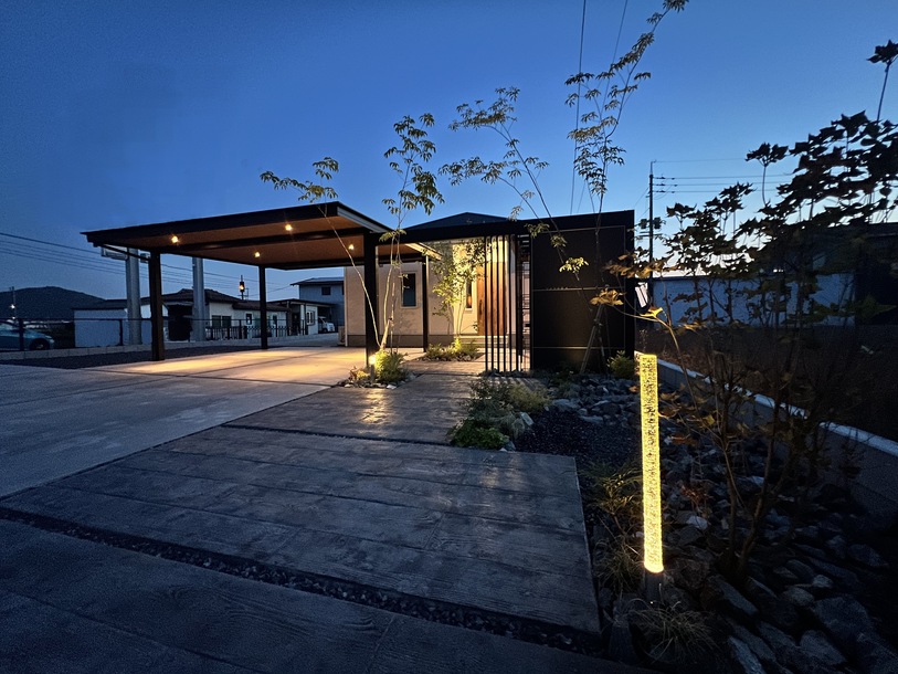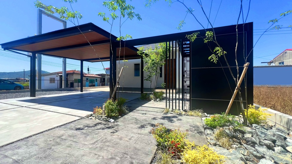 WORKS G-ポート木目天井カーポートとリレーリアをつなぐ素敵なファサード 岡山市 門柱ウォール背面は自転車置き場として目隠しした提案 エントランスアーチ風に仕上げた門廻りと雑木のしなやかさが美しい。 PREV WORKS NEXT