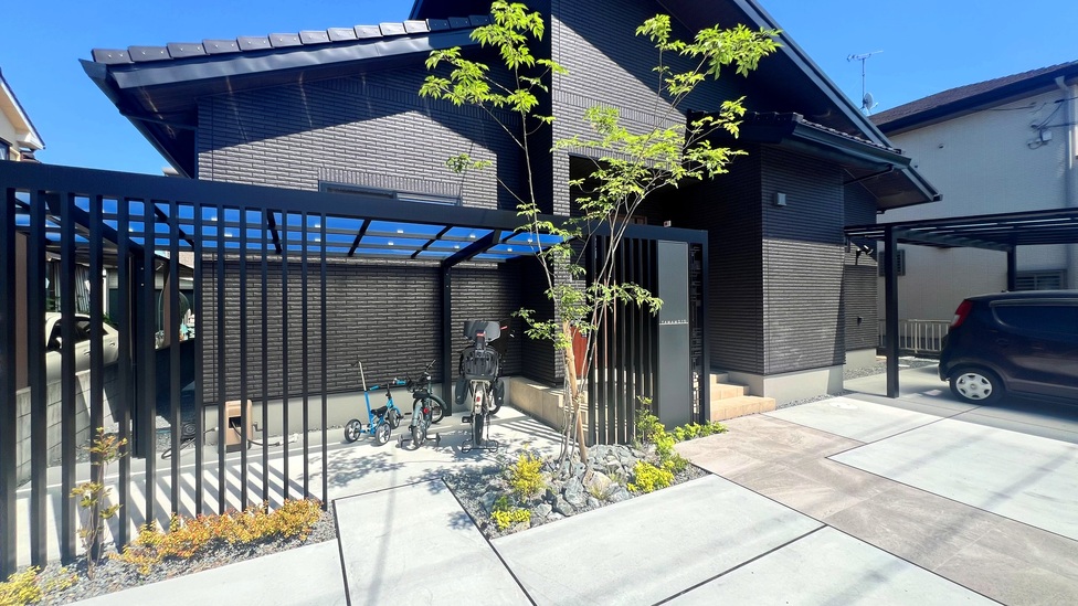 WORKS 黒いシャープな外構。プラスGとサイクルポートのお洒落な門廻り 総社市 プラスGフレーム格子で作る自転車置き場の目隠しとデザイン 門廻りのウォールはエバーアートボード。ブラックを主にしたシャープデザイン外構 COMMENT 収縮目地で溝からの雑草を回避 シャープでもあり、安全な収縮目地でのブロック割り お客様一言 とってもオシャレな外構気に入っております。 樹木も綺麗で夜の印象が良いです 収縮目地で溝からの雑草を回避 お客様一言 PREV WORKS NEXT