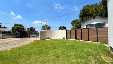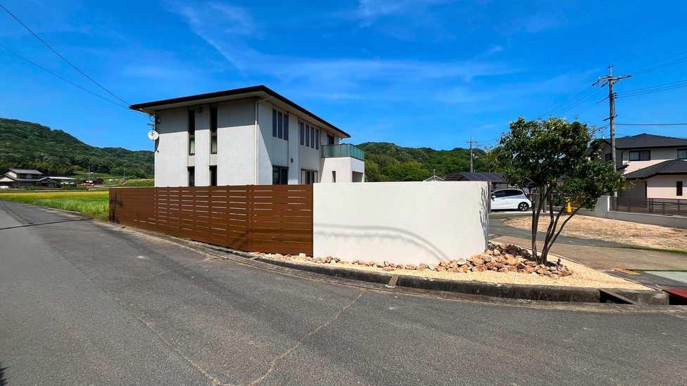 WORKS リフォーム外構 洋風な門廻り 瀬戸内市 R型の塗り門柱とオシャレな石張りの袖壁 門廻りと目隠しフェンスを工事しました。門廻りはお家や既存であった外構に合わせて可愛らしく、エレガントにリフォーム。広いお庭で視線を気にせず過ごすことが出来るように目隠しフェンスを設置 COMMENT ビフォー 施工前 お庭からの眺め H2000程で目隠ししているので、視線は気になりません。石壁がアクセントになり可愛らしいですね♪ お客様一言 素敵になりました。夜のライトアップも気に入ってます。 ビフォー お庭からの眺め お客様一言 PREV WORKS NEXT