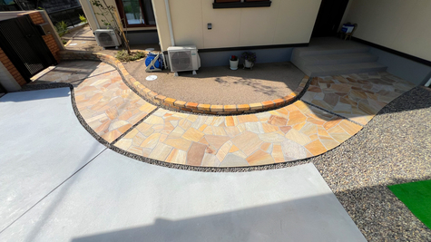 WORKS 乱形石のアプローチが素敵な外構 岡山市東区 クローズド外構 おしゃれなアプローチ クローズド外構曲線アプローチを乱形石で作る。門柱はレンガ貼り、レンガ土留めも曲線に合わせきれいな仕上がりです。 COMMENT 乱形石のアプローチ 計算されたアプローチの曲線ラインが美しい。 お客様のひとこと 曲線デザインがとても気に入っています! きれいに仕上げていただき、ありがとうございます。 乱形石のアプローチ お客様のひとこと PREV WORKS NEXT