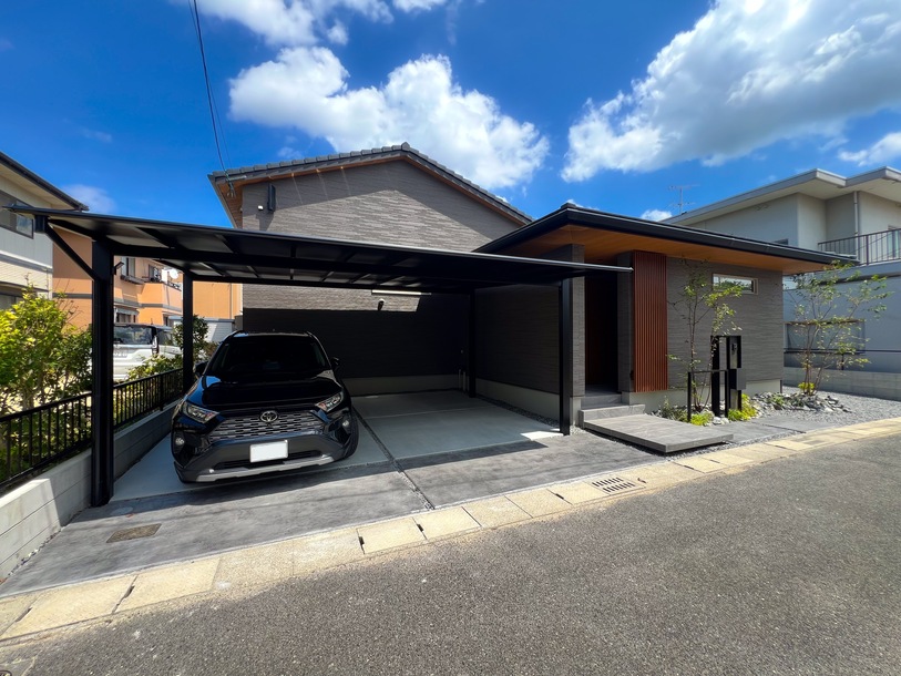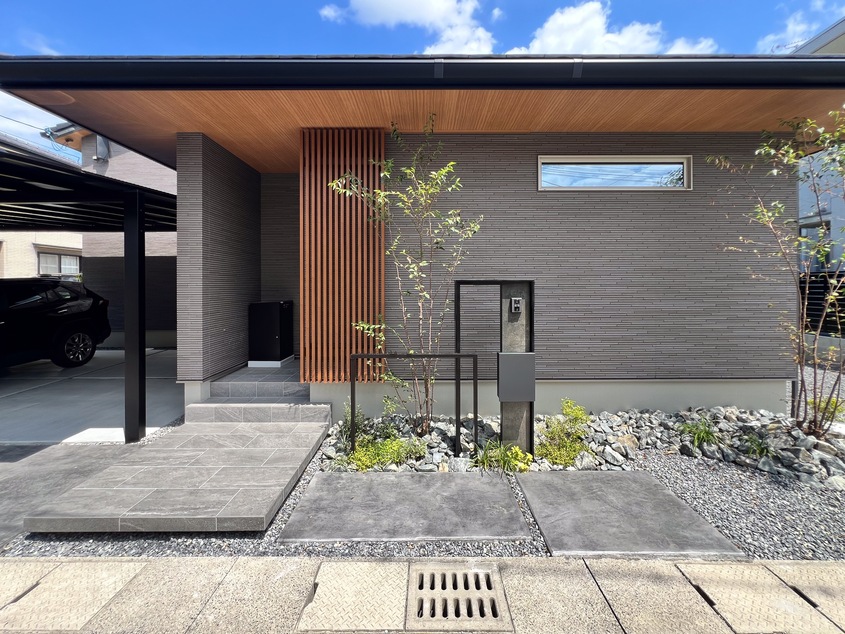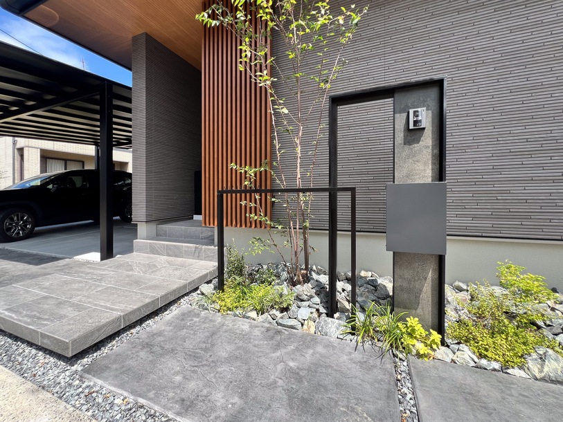 WORKS ジャパニーズモダンスタイル外構 スタイリッシュな門廻り 岡山市東区 シンプルフレームで作るおしゃれ門柱 オールブラックで仕上げる外構。 カーポートはブラックマット、目隠しフェンス、門回りはエバーアートボードのスマート門柱 COMMENT スマートでデザインのある門回り エバーアートボード+フレームで作る門回り 背景を邪魔しないデザインです お客様一言 スタンプコンクリートおしゃれですね! こんなきれいになるとは思いませんでした スマートでデザインのある門回り お客様一言 PREV WORKS NEXT