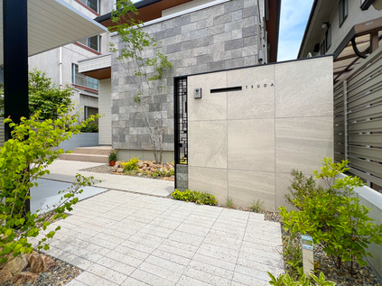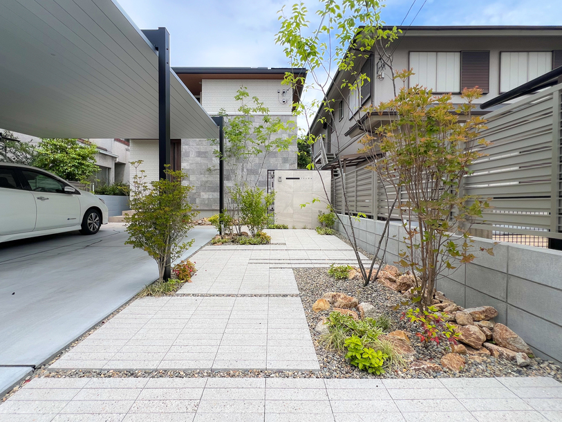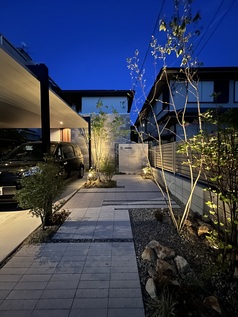 WORKS スタイリッシュモダン スリットデザインのアプローチと緑 岡山市北区 緑の綺麗な動線と照明の美 奥行きのあるアプローチデザイン。スタイリッシュなカーポートFⅡのがマッチした外構デザイン。割栗石は地産の大久保石。 COMMENT アプローチの照明 樹木と照明が入ることで、素敵な動線になります。 門回りデザイン スクリーンのデザインアクセントと600角タイルのスタイリッシュなフォルム。 お施主様一言 素敵な外構工事ありがとうございました。 とても満足です。 アプローチの照明 門回りデザイン お施主様一言 PREV WORKS NEXT